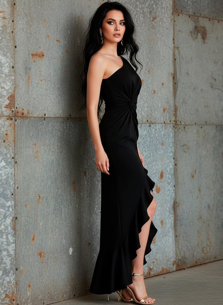 Vestido Elegante a Un Hombro con Hendidura y Volantes en Pierna – Glamour sexy que roba miradas en cada paso